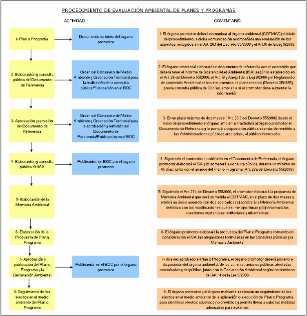 En el ámbito de la Comunidad Autónoma de Canarias se aprobó el procedimiento de Evaluación Ambiental de Planes mediante el Reglamento de Procedimientos de los instrumentos de ordenación del sistema de planeamiento de Canarias (Decreto 55/2006, de 9 de mayo).